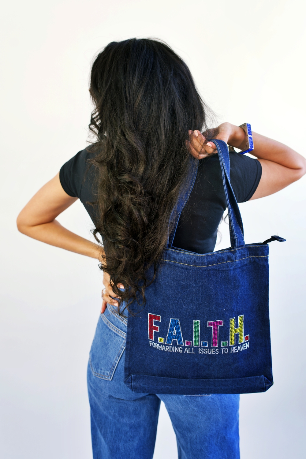 • Denim tote bag • Length - 39cm. Width - 34cm. Handle drop - 20cm • 100% cotton hardwearing denim